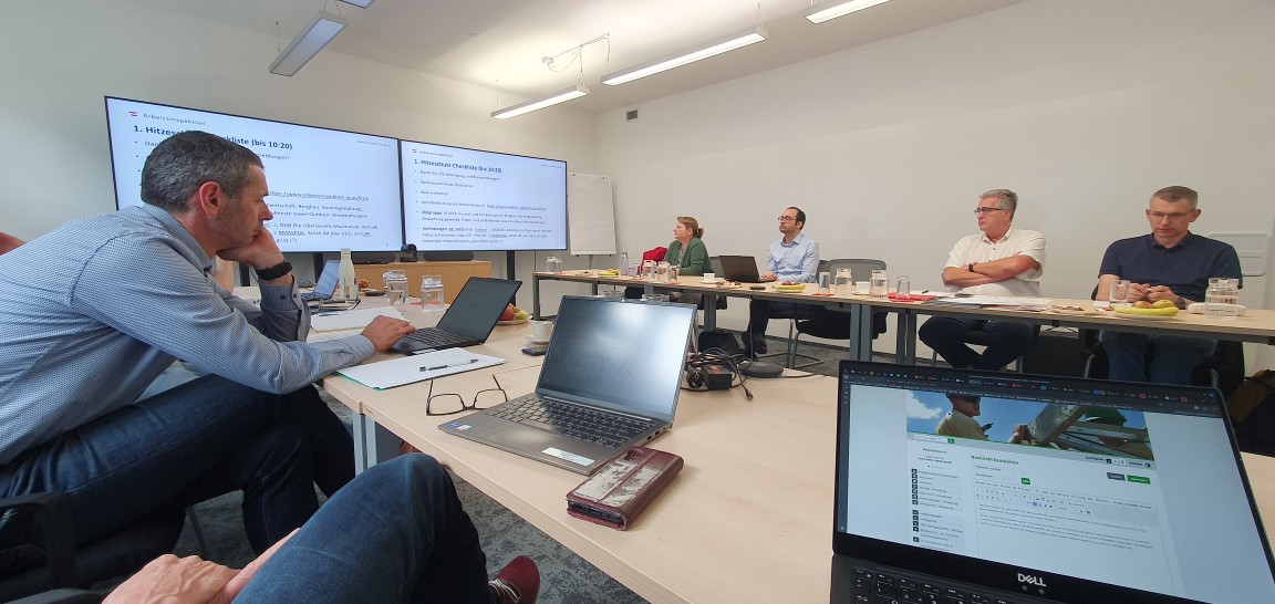 Erstes Ziel war die Finalisierung der Checkliste für Hitze- und UV-Schutzmaßnahmen bei Arbeiten im Freien im Sinne der Hitzeschutzverordnung. Diese gut strukturierte Checkliste sowie zwei Plakate sind auf der Website der Arbeitsinspektion https://www.arbeitsinspektion.gv.at/hitze ab sofort verfügbar.